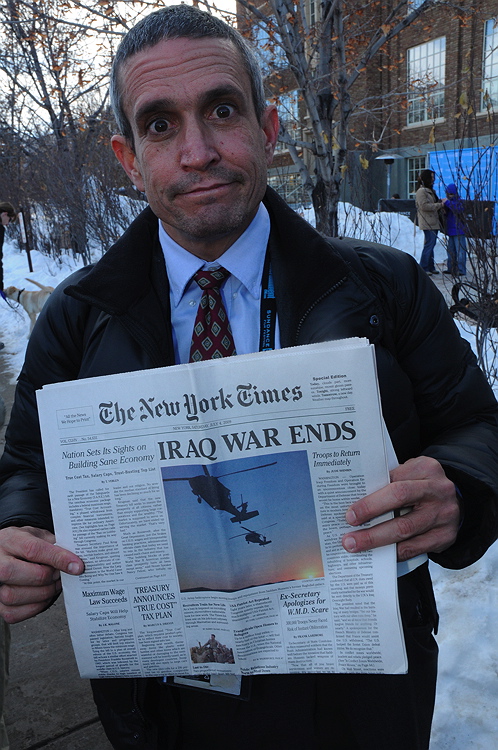 Je leur lève mon chapeau pour leur faux « The New York Times » remplie de bonnes nouvelles. Vous en trouverez fragments sur ce site: The New York Times.