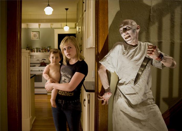 Je trouve ces photos d’une violence un peu trop crue, mais l’idée d’exploiter les peurs enfantines me plaît. D’autres images disponibles sur son site sont plus difficiles à regarder.