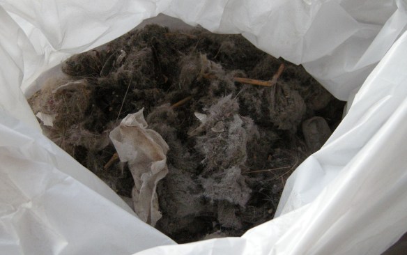 « Esti d’crotté ». Après trois heures d’aspiration de tous les recoins de l’appartement. Ma récolte fut de 260g de poussière, d’acariens, de poils, de cheveux, de miettes de bouffe, de choses suspectes diverses, etc. C’est un peu comme si mon aspirateur me disait que j’étais un esti de crotté. Cela dit, avec l’embout « brosse dure miniature longue », j’ai aspiré la saleté logée dans les glissières de mes fenêtres, les recoins de murs et les plinthes et quarts de rond. La récolte fut bonne et ce n’est pas pour rien.