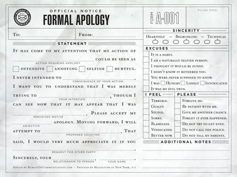 Tension avec les collègues. Annonce délicate à faire. Quoi de mieux que de remplir un formulaire générique et l’envoyer à qui de droit? Et bien, c’est ce que vous offre The Bureau of Communication.