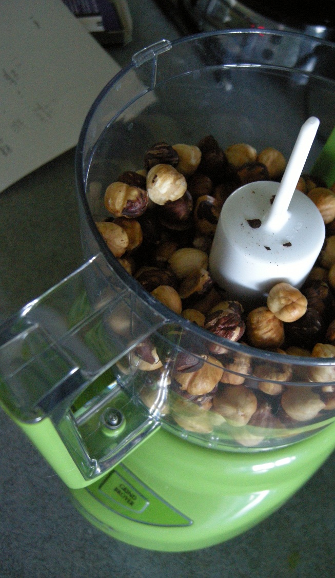 Noisettes pelées et grillées sur le point d'être pulvérisées dans ce très utile robot culinaire miniature Cuisinar Mini-Prep® Plus Processor DLC-2AG à 40$