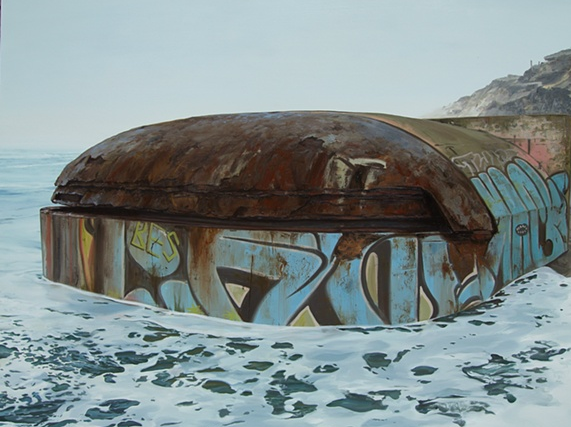 Les toiles présentées ci-bas s’inscrivent toutes dans son projet Reclamation. À travers ce projet, l’artiste explore le passage du temps et la force de la nature sur ces installations. De plus, il considère que les bunkers offrent un juste métaphore avec le travail de l’artiste à savoir qu’ils sont des « observateurs actifs, mais stationnaires » (traduction libre).